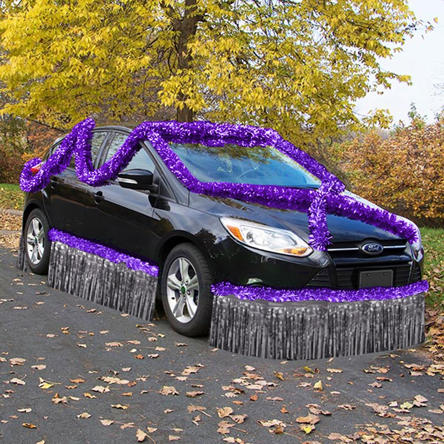 Complement your Mardi Gras or Homecoming parades by using this Purple and Silver Metallic Car Parade Decorating Kit to jazz up any standard car. The kit includes two 4" x 25' purple metallic twists and three 15" wide x a 10' long silver metallic fringe. Use the fringe to cover the undercarriage of the car; use the twists to line the edges of the roof, loop around the windows, and more. The fringe and twists all feature a fancy metallic finish for lots of shine in the sunlight! The purple and silver color scheme of this kit is perfect for Mardi Gras, Christmas, winter, graduation, Homecoming, and many other special events for your school, organization, or community.