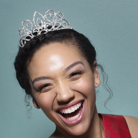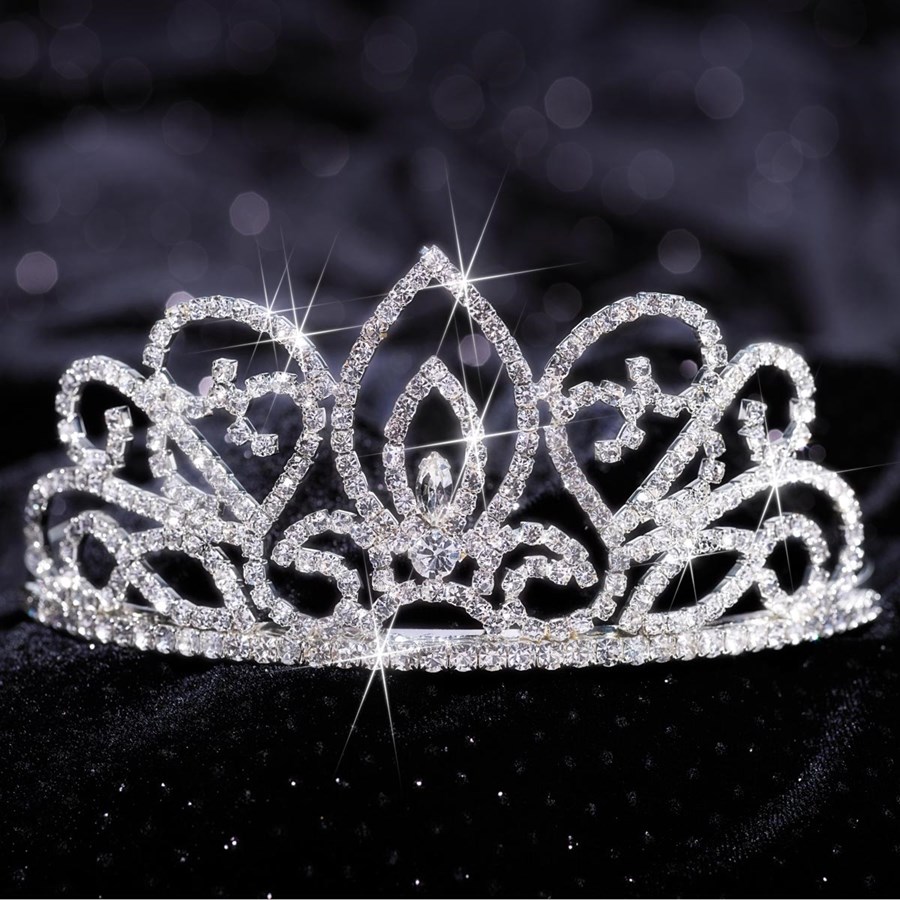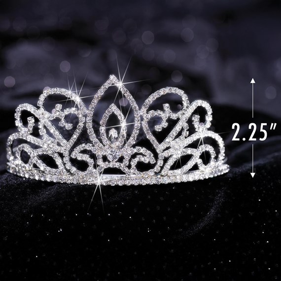 The classic and elegant design of our 2 1/4" high Adele tiara makes it the perfect royalty accessory for a Homecoming, community pageant, or special event princess or duchess. The stunning crystal tiara is exquisitely crafted of sturdy silver metal and features hundreds of brilliantly sparkling clear rhinestones that shine like diamonds as they catch the light. It makes a memorable and beautiful keepsake for anyone who wears it.