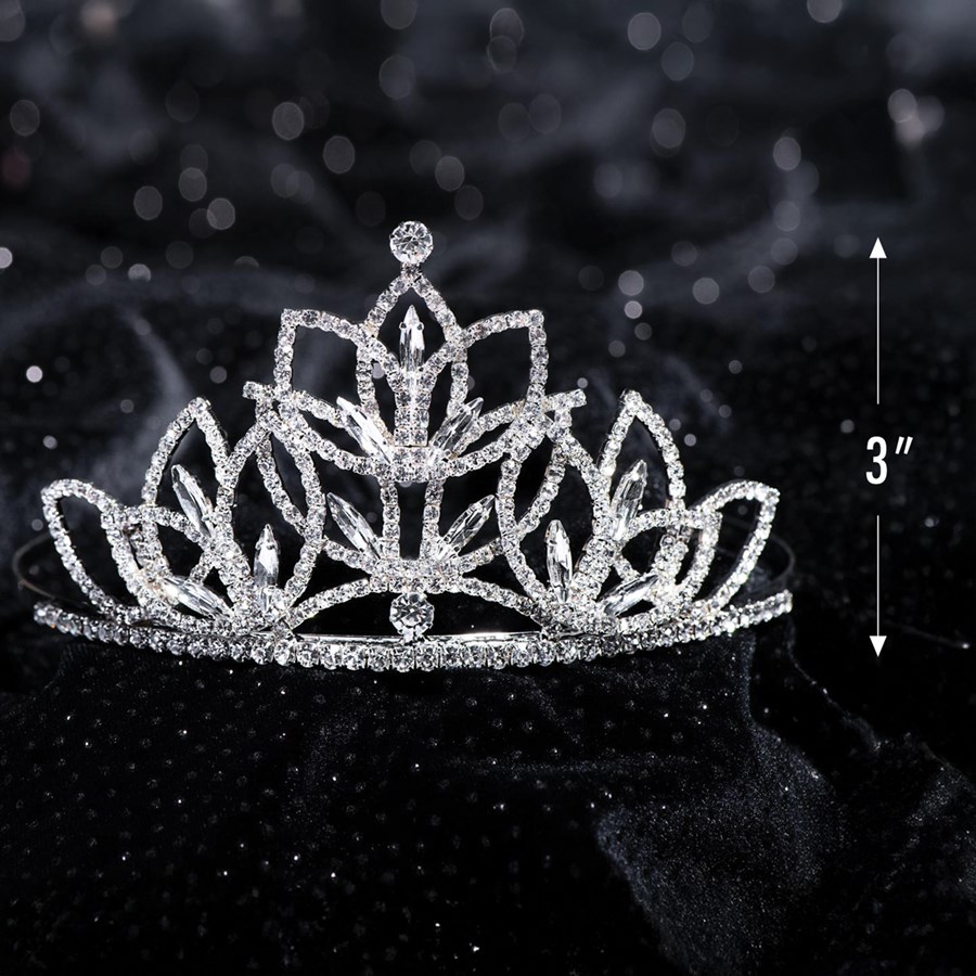 Bring out the sparkling personality of your pageant or festival queen, princess, or duchess with this amazingly radiant 3" high Olive Tiara. It's the perfect royalty accessory to put any member of the royal court in the spotlight during coronation, a parade, or community event. The stunning tiara is made of sturdy high-quality silver metal and is adorned with brilliant clear rhinestones that sparkle and shine like diamonds when they catch the light. Any member of the royal court will be proud to receive and wear this gorgeous clear crystal tiara.