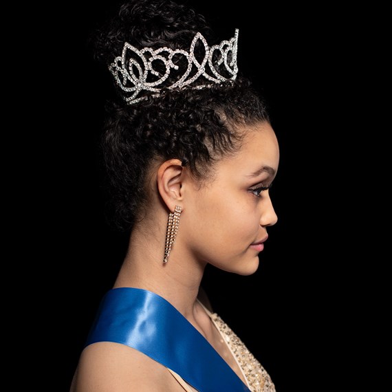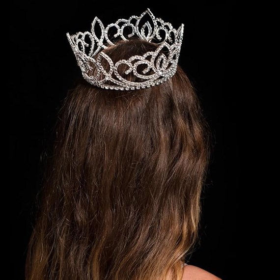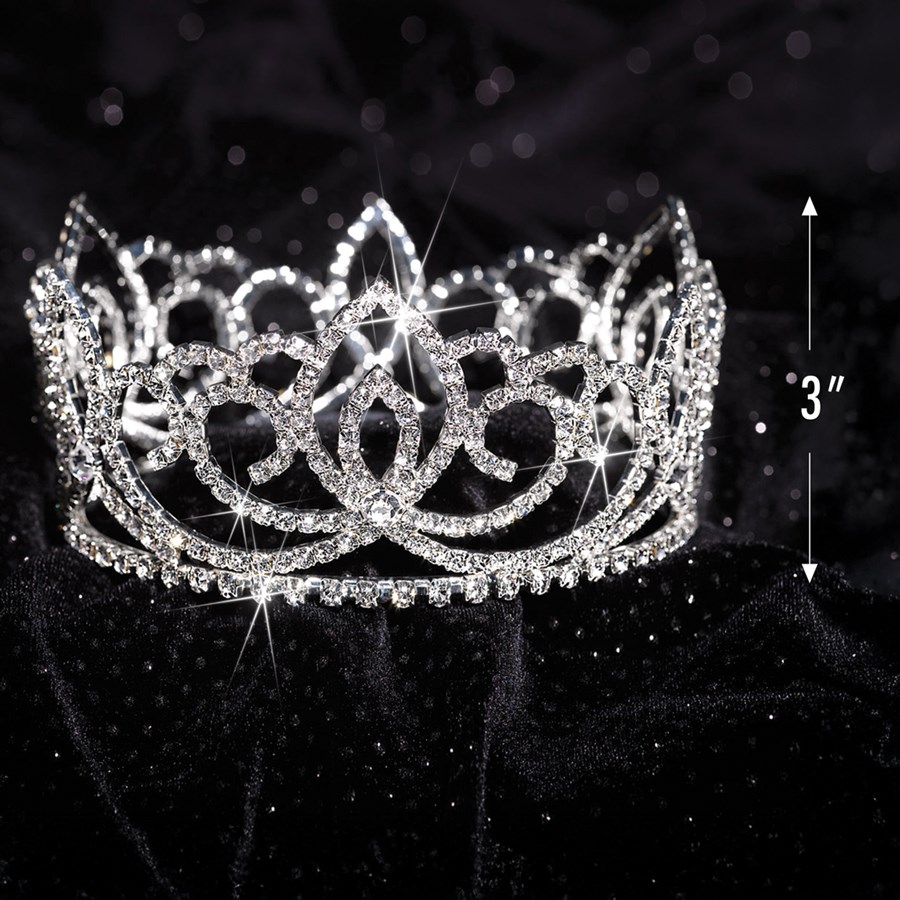 Make the royalty on your Homecoming, community, or organization's parade float really stand out by crowning them with this majestic Sasha Full-crown Tiara. At 3" high, this gorgeous goddess of a tiara is perfect for a Queen, Princess, Duchess, or any member of the royal party. The stunning crystal tiara is exquisitely crafted of sturdy silver metal and features hundreds of brilliantly sparkling clear rhinestones that shine like diamonds as they catch the light. And it is full-crown style to give the wearer an extra regal look.